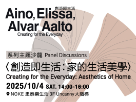 《創造即生活──愛諾、艾莉莎與阿爾瓦.阿爾托》由忠泰美術館與芬蘭阿爾瓦.阿爾托基金會攜手策劃,首次在臺灣完整呈現這三位建築師跨越半世紀的合作歷程,從私人住宅到公共建築、從手工製品到量產家具,揭示他們如何以設計連結個人、家庭與國家文化價值。